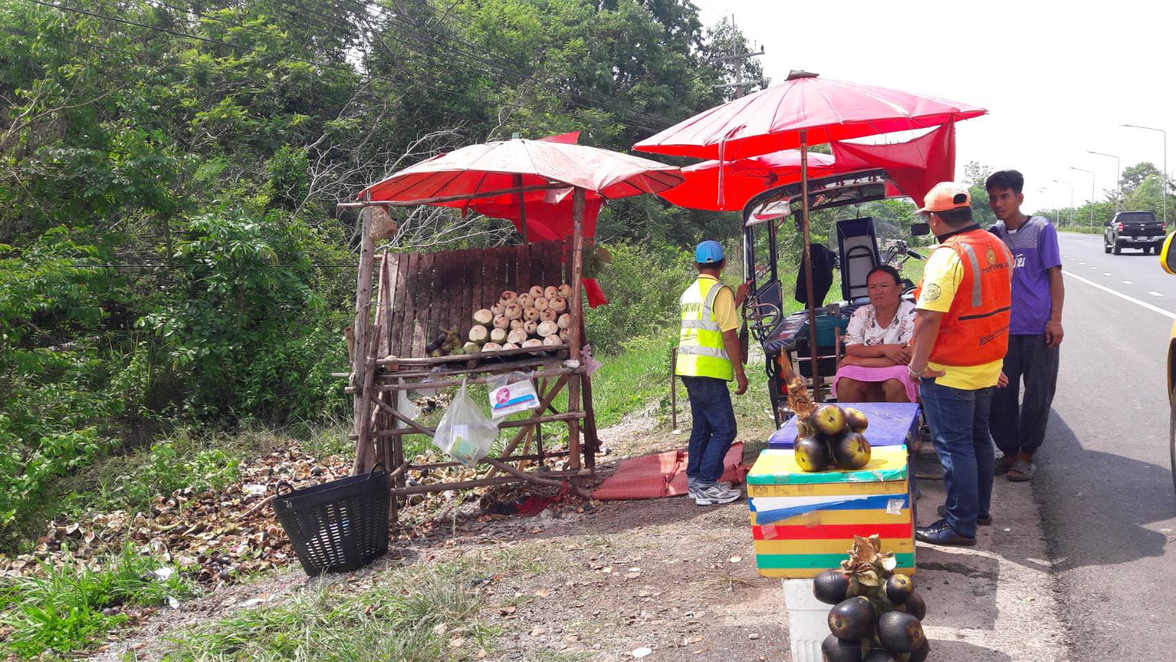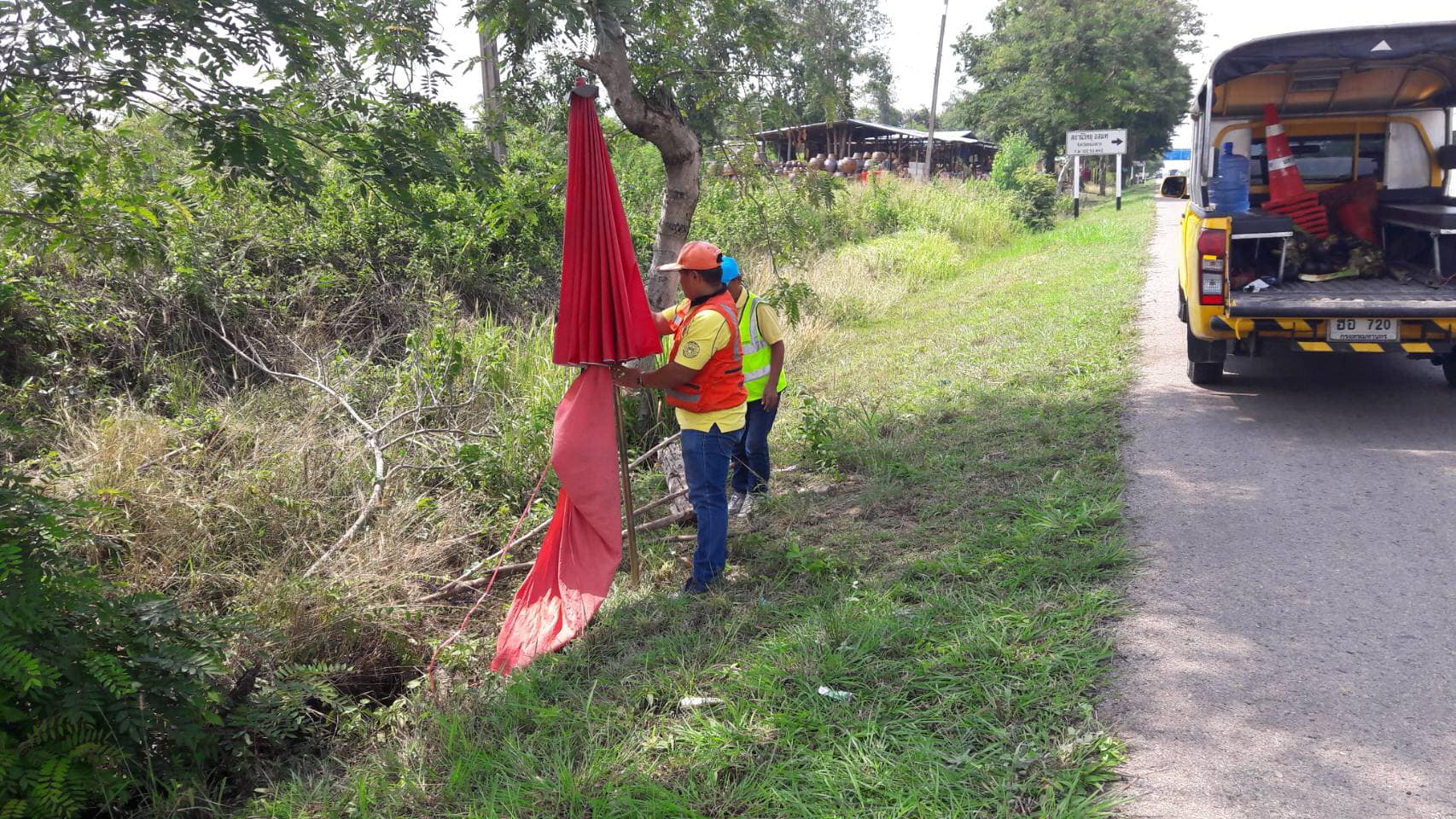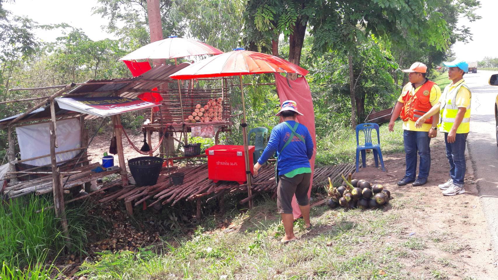 วันที่ 17 พฤษภาคม 2562 หมวดทางหลวงหนองคาย ดำเนินการแจ้งเตือนร้านค้าตั้งเพิงในเขตทางหลวงผิดกฎหมาย ในทล.2 กม.492+000 - กม.495+000 ปริมาณงาน 12 แห่ง