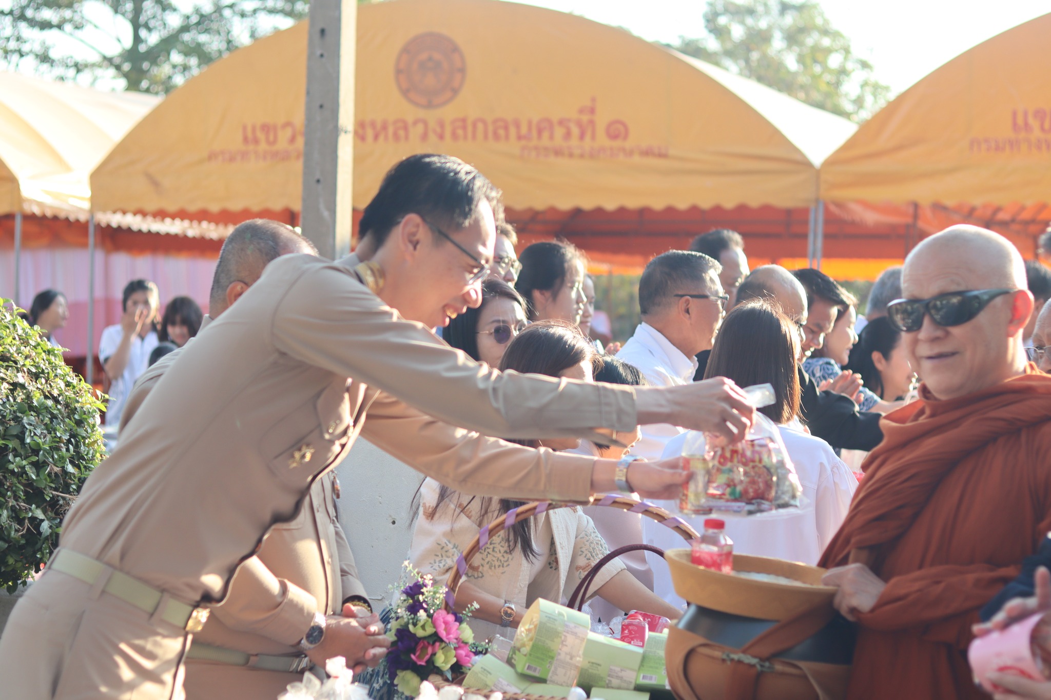 โดยพิธีในครั้งเเขวงทางหลวงสกลนครที่ 1 ได้รับเกียรติจาก นายปริญ นิทัศน์เอก รองผู้ว่าราชการจังหวัดสกลนคร นายเอกภพ โสภณ รองผู้ว่าราชการจังหวัดสกลนคร นางสาวสิริกุล จงจิตเกษม ผู้พิพากษาหัวหน้าศาลเยาวชนและครอบครัวจังหวัดสกลนคร รวมทั้งหัวหน้าส่วนราชการต่างๆในจังหวัดสกลนคร คหบดี ญาติธรรมสายบุญ พร้อมแขกผู้มีเกียรติ เข้าร่วมพิธีในครั้งนี้ด้วย