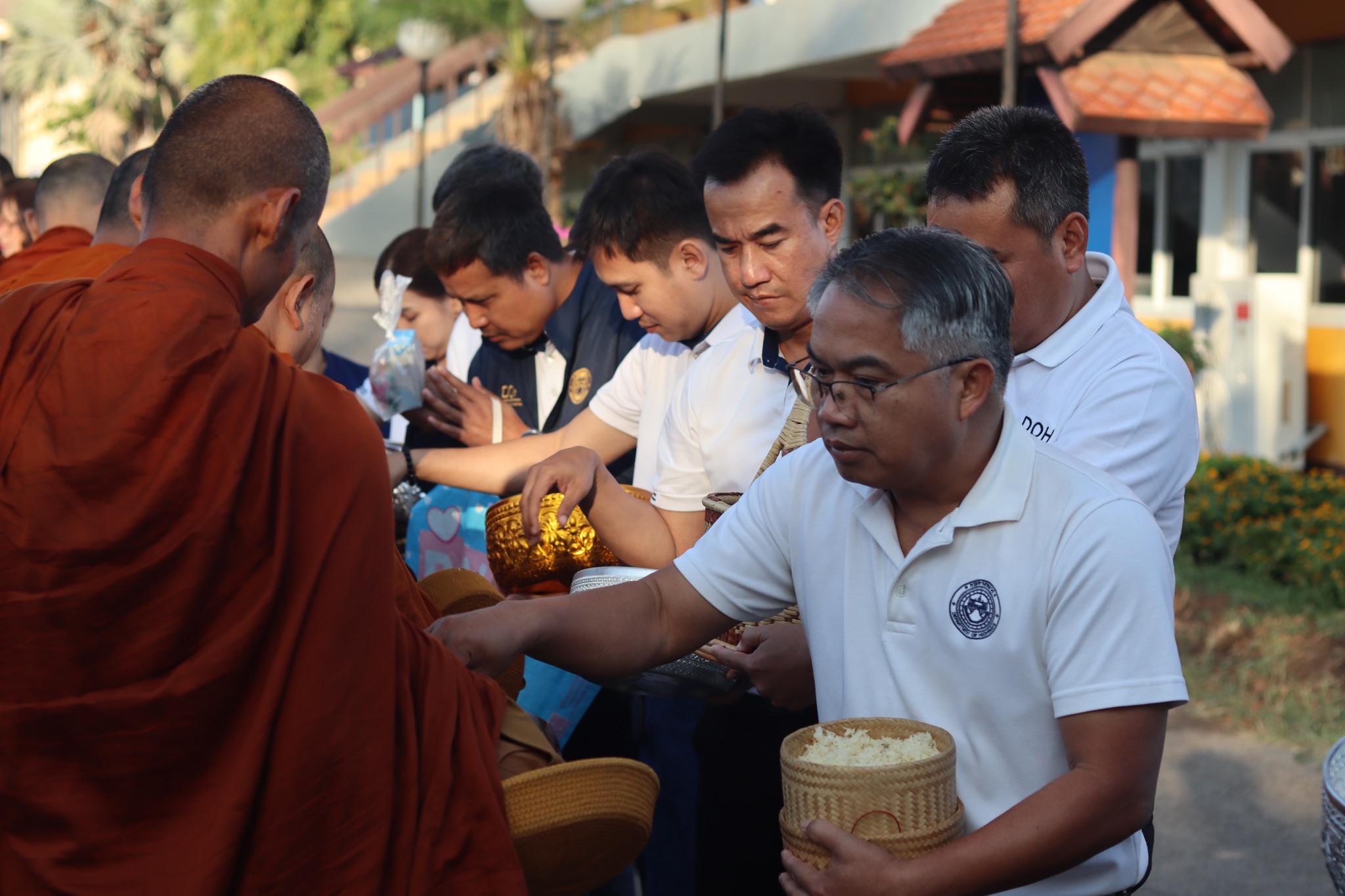 แขวงทางหลวงสกลนครที่ 1 จัดพิธีทำบุญตักบาตรสำนักงานฯ เพื่อสร้างขวัญกำลังใจในการปฏิบัติงานให้แก่ข้าราชการเเละเจ้าหน้าที่ในสังกัด ในการนี้ได้นิมนต์พระสงฆ์มาเจริญพระพุทธมนต์พรมน้ำมนต์ จำนวน 14 รูปดังนี้