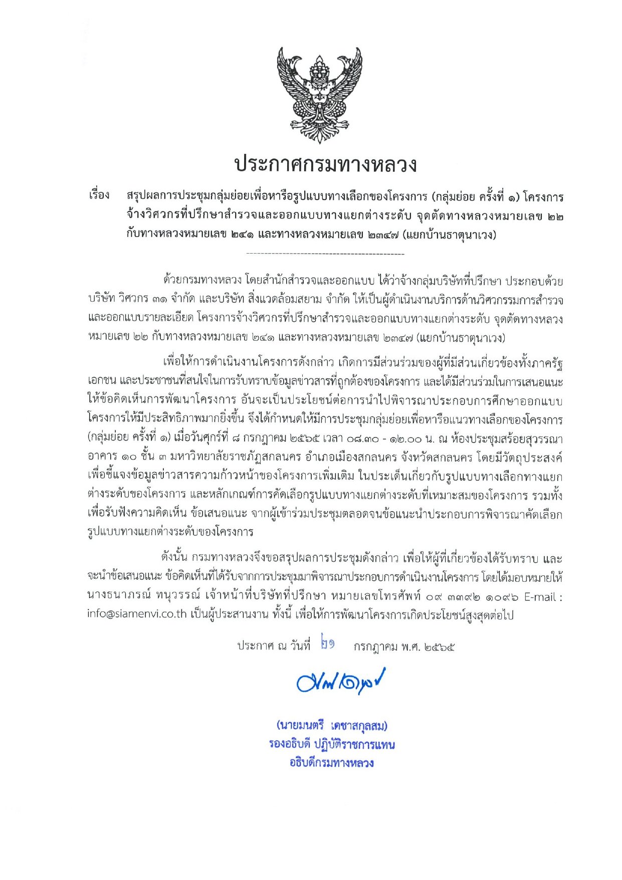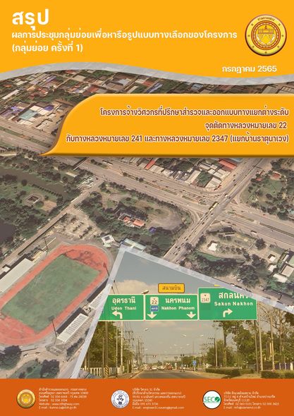 สรุปผลการประชุมกลุ่มย่อยเพื่อหารือรูปแบบทางเลือกของโครงการ (กลุ่มย่อย ครั้งที่ ๑) โครงการจ้างวิศวกรที่ปรึกษาสำรวจและออกแบบทางแยกต่างระดับ จุดตัดทางหลวงหมายเลข ๒๒ กับทางหลวงหมายเหลข ๒๔๑ และทางหลวงหมายเลข ๒๓๔๗ (แยกบ้านธาตุนาเวง)