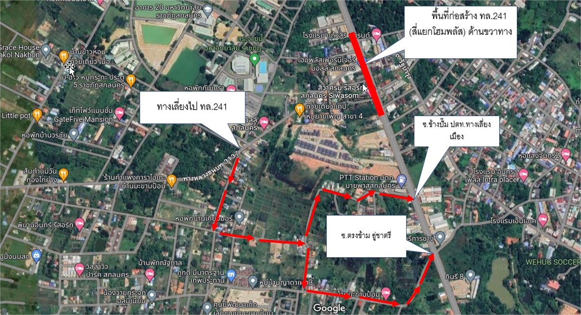 แขวงทางหลวงสกลนครที่ 1 ได้ทำการว่าจ้างงานสัญญาโครงการยกระดับความปลอดภัยบริเวณทางแยกขนาดใหญ่ ทล.241 ตอน ทางเลี่ยงเมืองสกลนคร (สี่แยกโฮมพลัส)