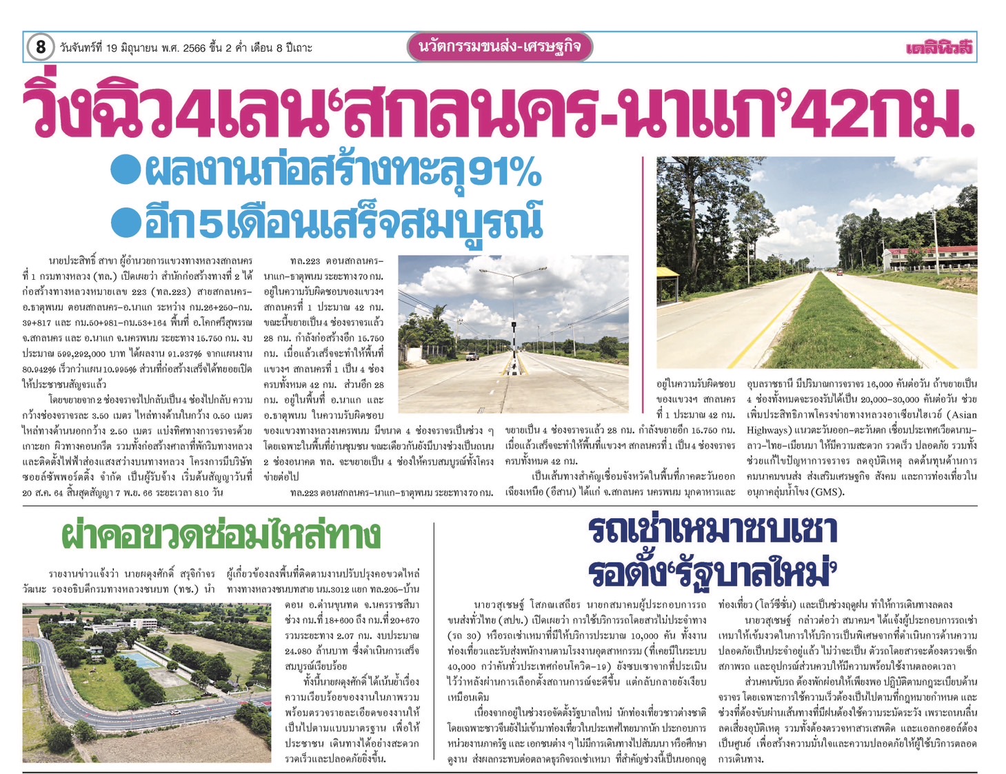 วิ่งฉิว4เลนสกลนคร-นาแก42กม. ผลงานก่อสร้างทะลุ91% อีก 5เดือนเสร็จสมบูรณ์