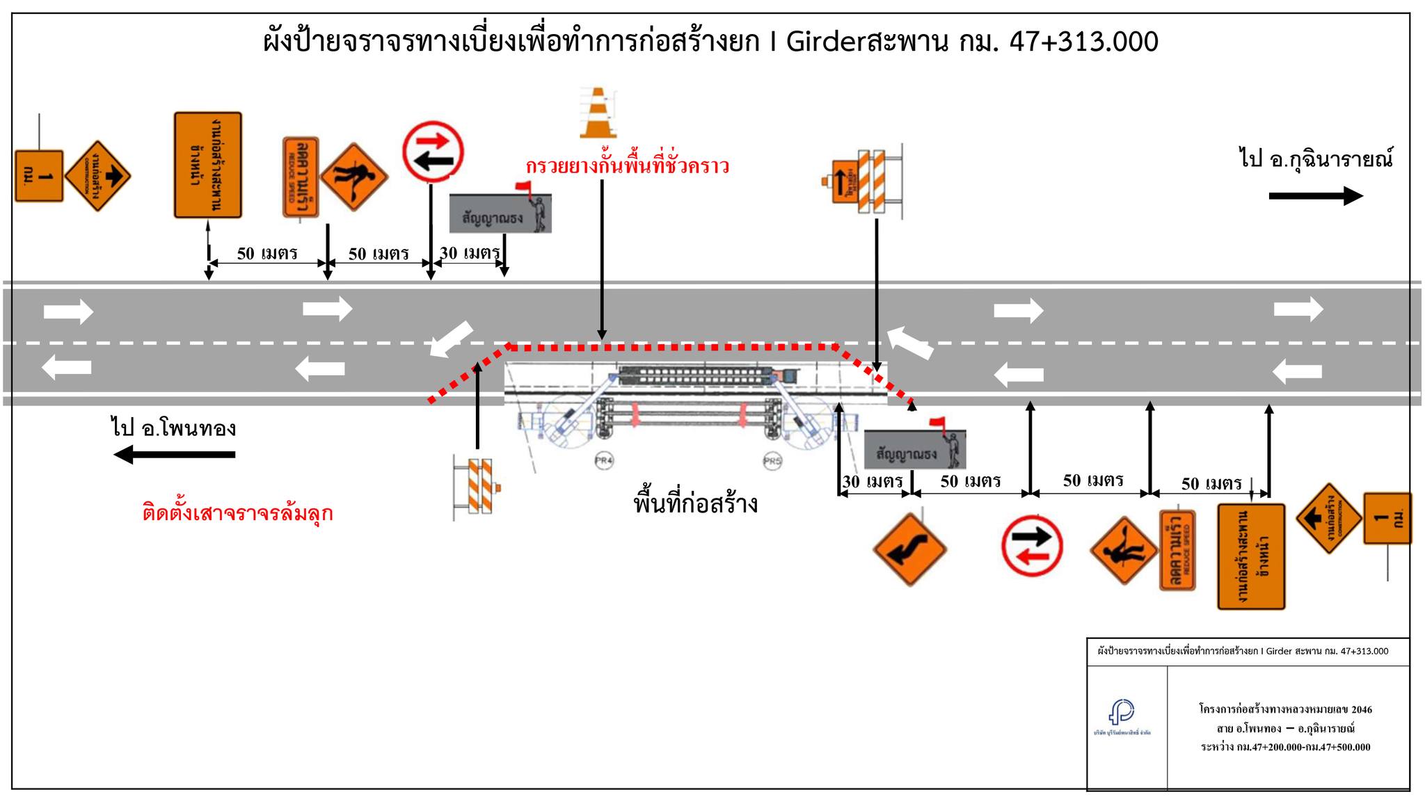 ประชาสัมพันธ์ปิดเบี่ยงจราจรชั่วคราว ยกติดตั้ง I Girder สะพาน